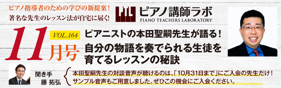 「ピアノ講師ラボ」2025年11月号2025年11月号「ピアニストの本田聖嗣先生が語る!自分の物語を奏でられる生徒を育てるレッスンの秘訣」