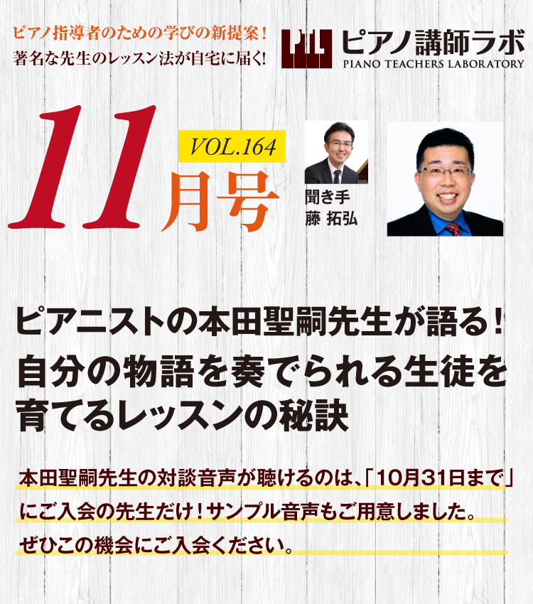 【音声講座予告】2025年11月号「ピアニストの本田聖嗣先生が語る!自分の物語を奏でられる生徒を育てるレッスンの秘訣」