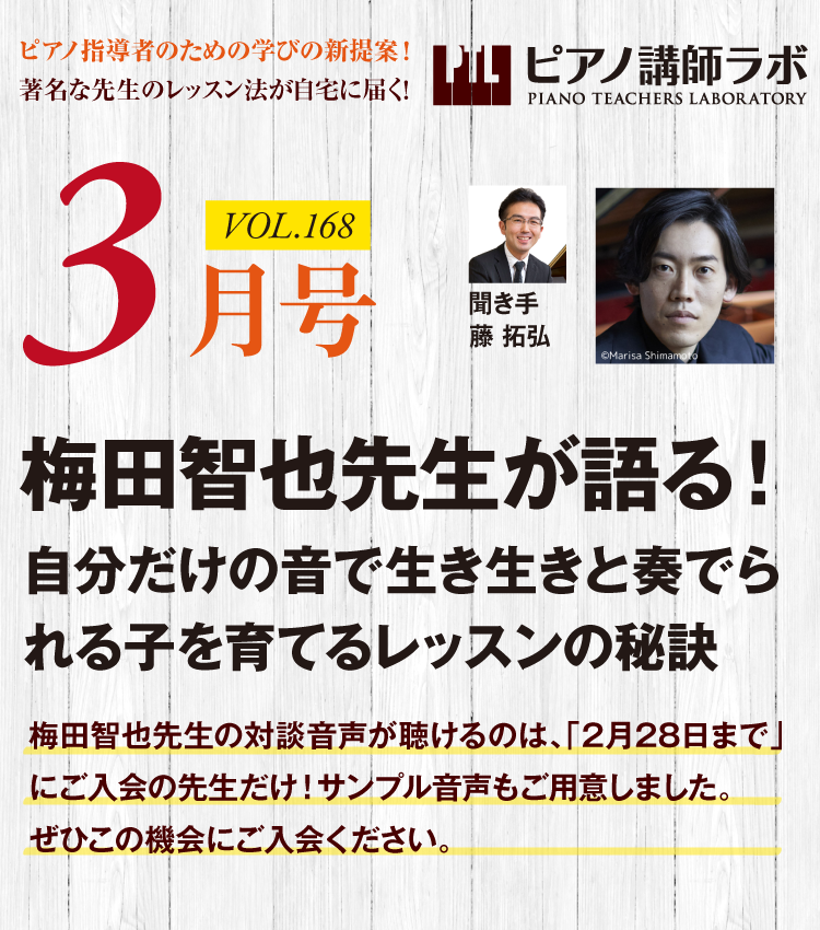 【音声講座予告】2026年3月号「梅田智也先生が語る!自分だけの音で生き生きと奏でられる子を育てるレッスンの秘訣」